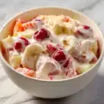 Storing this fruit salad is simple! You can keep it in an airtight container in the fridge for up to 5 days. Just give it a gentle stir before serving to redistribute the flavors. I don’t recommend freezing this salad, as the fruits and creamy ingredients don’t thaw well, which may alter the texture.