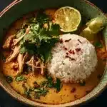 A warm, comforting dish that combines tender chicken, creamy coconut milk, and aromatic spices, perfect for family dinners.