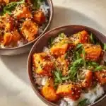 Drizzle and garnish: Pour the sauce over each bowl, sprinkle with sesame seeds, and you’re ready to enjoy!