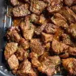Juicy steak bites cooked in a rich garlic butter sauce, perfect for a quick and satisfying meal.