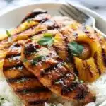 Serve the grilled chicken on a bed of coconut rice. Top it off with the grilled pineapple, and don’t forget to garnish with chopped green onions for a pop of freshness and color.