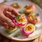 It depends on how vibrant you want them! Start with a small amount of beet juice and add more gradually until you achieve your desired shade. Remember, the flavor is subtle, so don’t worry about it overpowering the egg filling.
