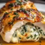 A delicious and creamy stuffed chicken inspired by Ruth’s Chris Steak House. This dish combines tender chicken breasts with a cheesy spinach filling, perfect for family dinners or special occasions.