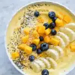 If you happen to have leftovers (which is rare), here’s how to store them. Store any leftover smoothie base in an airtight container in the fridge. It will keep for one day but might lose its vibrant color and creamy texture over time. If you’ve already added your toppings, it’s best to consume it immediately, as they won’t hold up well overnight.